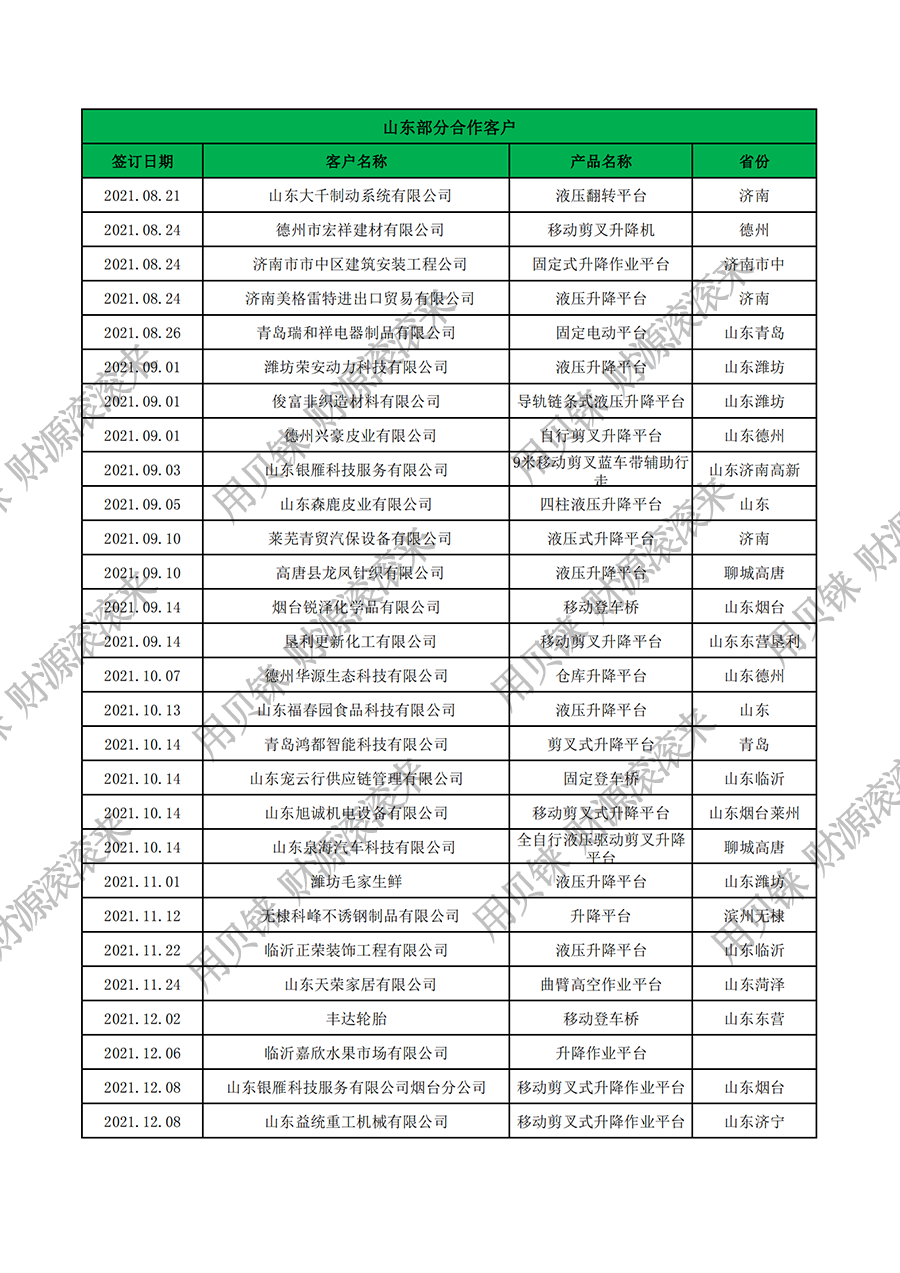 • 山東部分客戶1