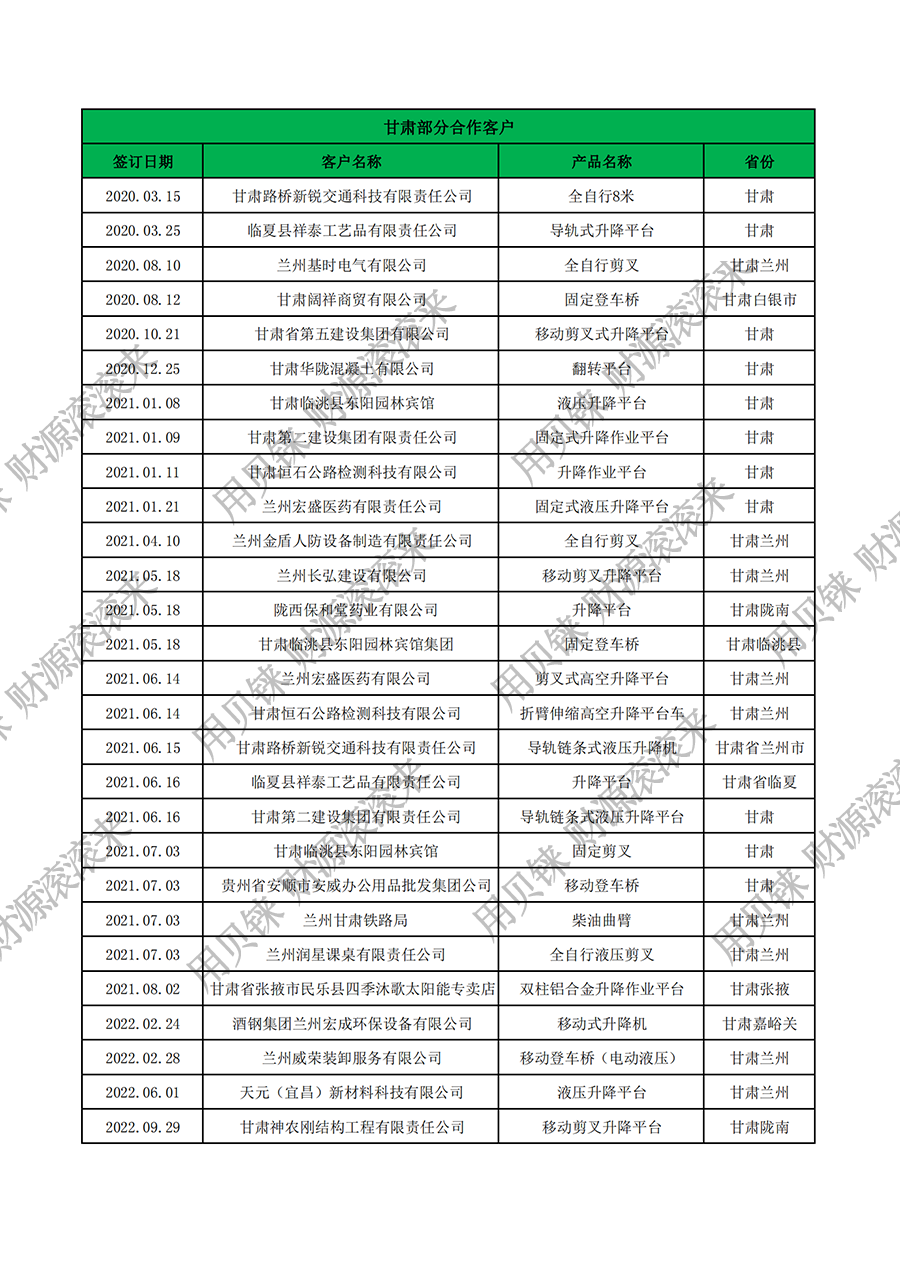 • 甘肅部分客戶
